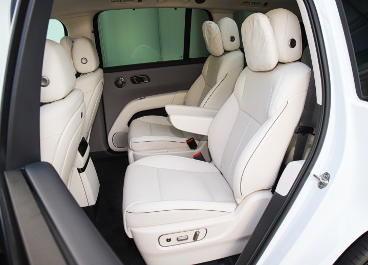 座椅方面,座椅布局采用2+2+2六座设计,全车三排标配电动调节与加热功能,第二排零重力座椅支持145°躺姿,配合车载冰箱与256色氛围灯,打造沉浸式家庭出行场景。后备箱可容纳5-6个20寸行李箱,第三排座椅放平后扩展性进一步提升。